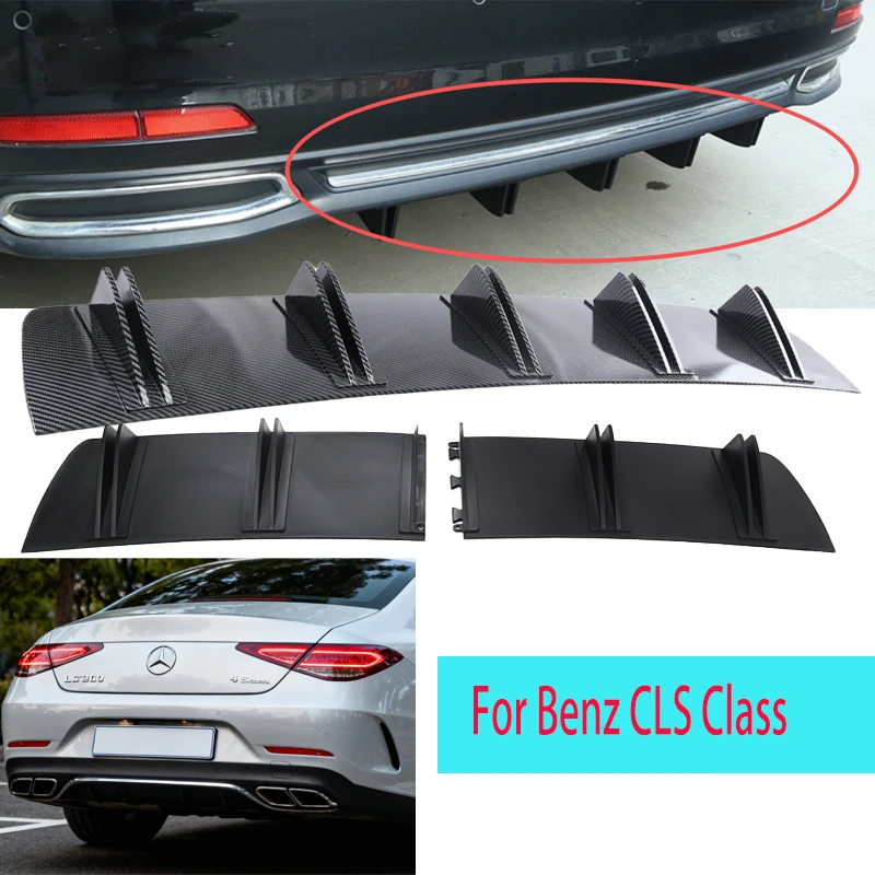 For Mercedes Benz CLS Class Car Rear Bumper Lip ABS Double Wing Rear Shark Chassis Fin Style Curved Bumper Lip Diffuser
