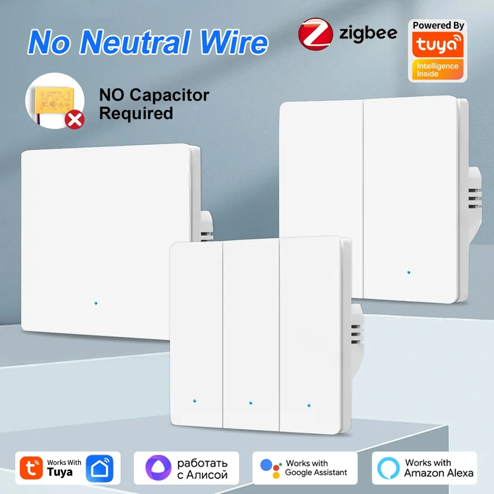 Tuya ZigBee3.0 Smart Switch No Neutral Wire Intelligent US Wall Button Light Switch AC100-240V APP Voice Control With Alexa