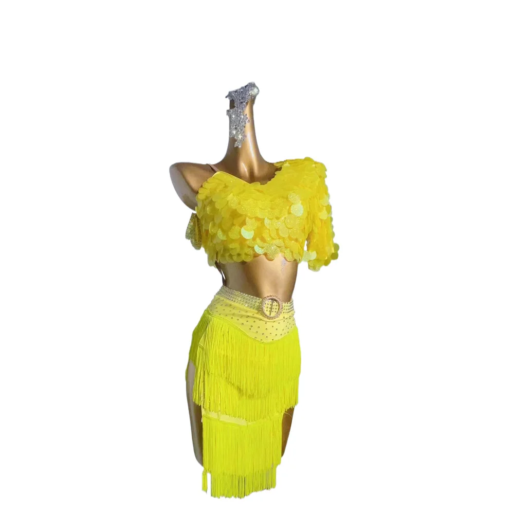 Latin Dance Stage Costume dress High-end Custom International Competition Dancer Competition Suit Sequin Tasser