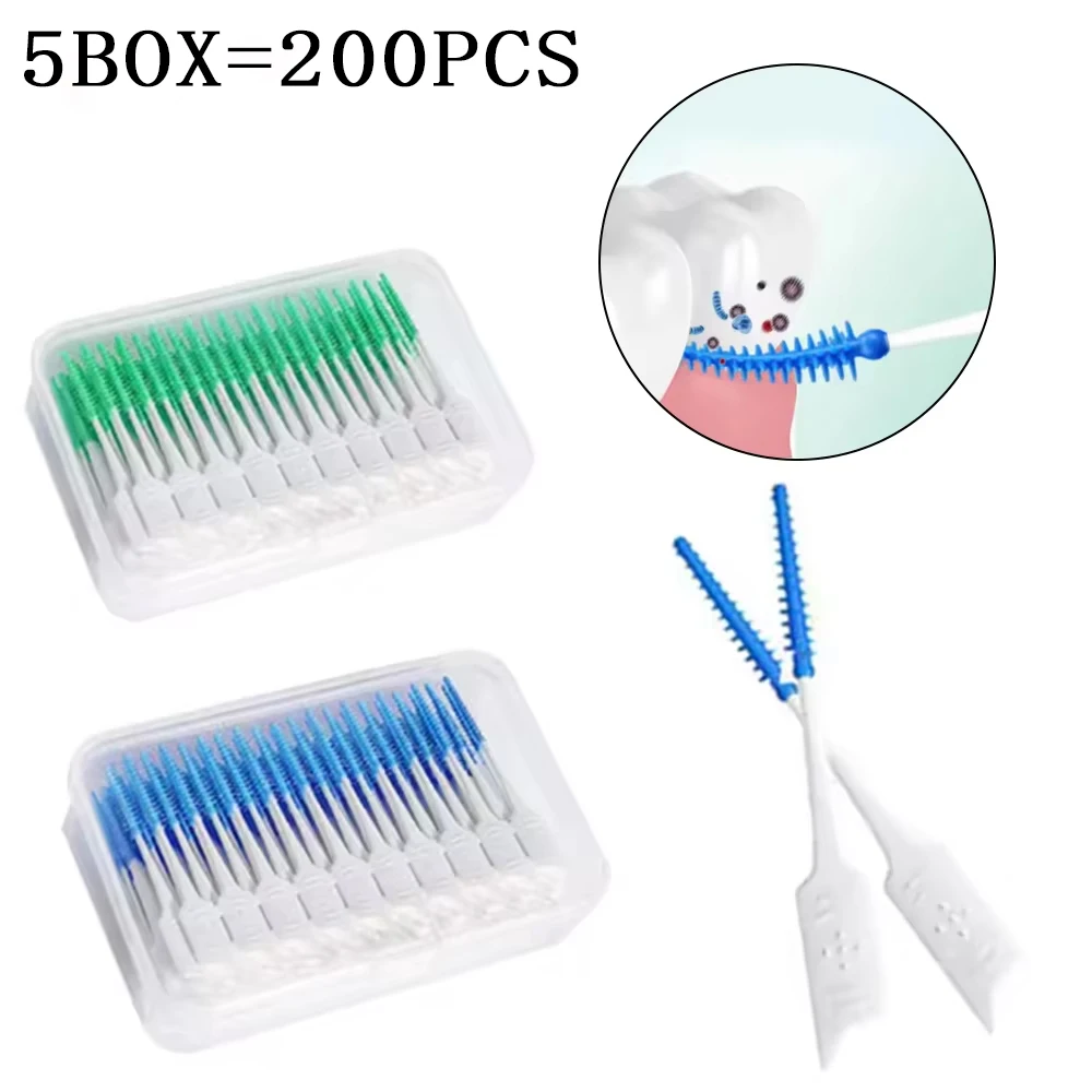 200 Piece Interdental Brushes with Soft Silicone Heads for Teeth Gaps Orthodontic Cleaning and Oral Care Tool Set