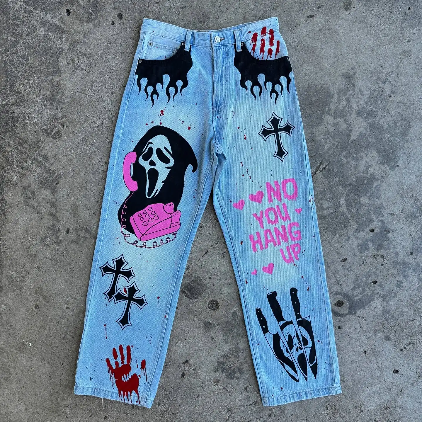 Y2k Ghostface Custom Jeans Women Baggy Jean Popular Trouser Streetwear Wide Leg Women High Waist Pants Harajuku Women Clothing