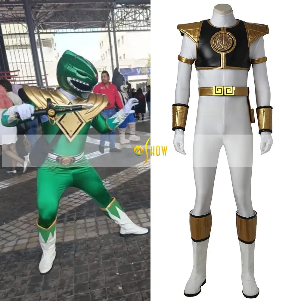 White Tommy Cosplay Costume Bodysuit Amor Belt Full Set and Individual Items Are Sold Mighty Ranger Outfit Custo 2025