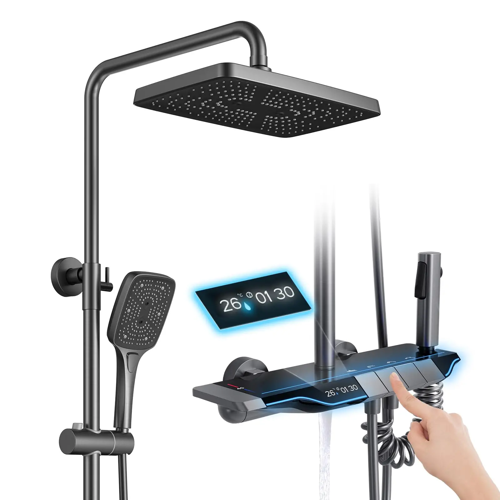 Modern Brass Gray Thermostatic Digital Display with Ambient Lights Shower Set 4-Function Piano Key Bathroom Shower Set