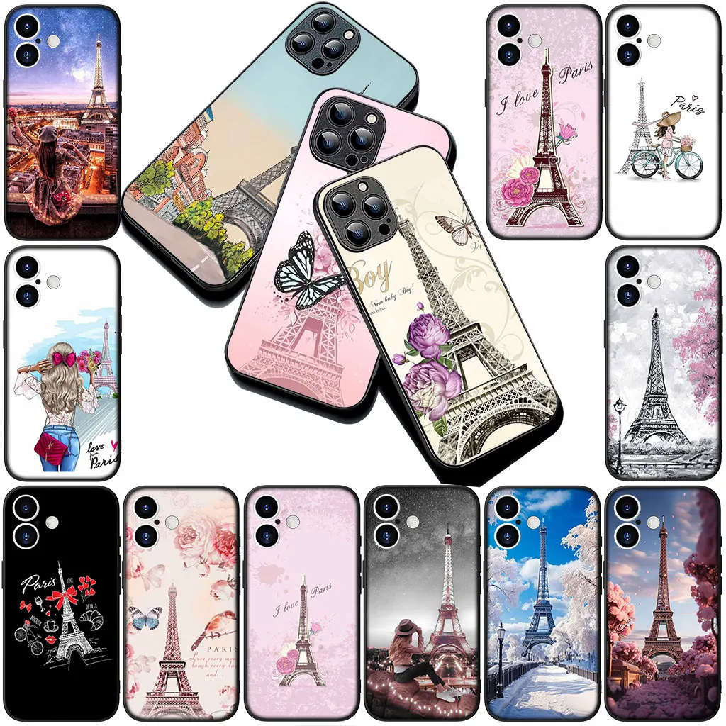 Phone Cover Love Paris Eiffel tower pink for Samsung Galaxy S25 S24 S22 S23 FE Ultra Plus A56 A05 A06 A15 A16 A55 S7 Edge Case