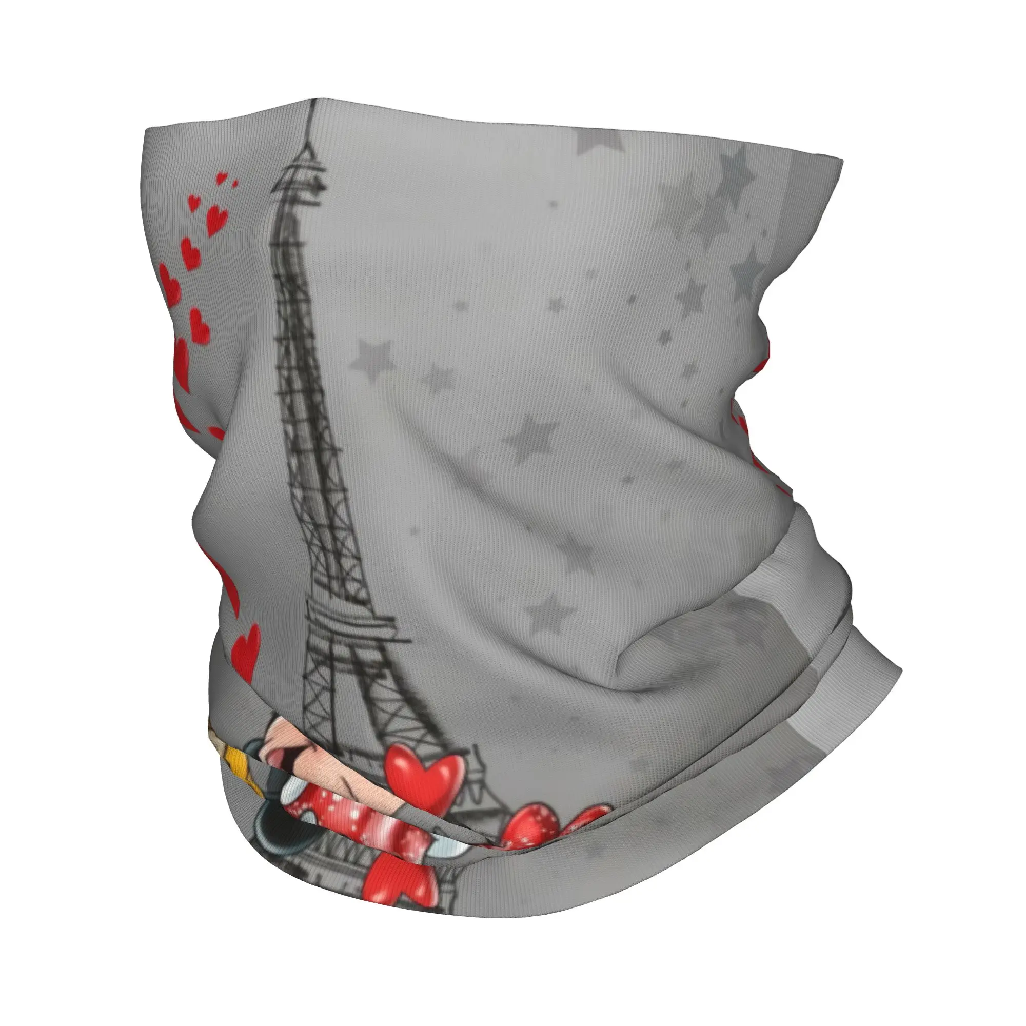 Custom Mickey Mouse Minnie Mouse Bandana Neck Warmer Women Men Winter Hiking Ski Scarf Gaiter Eiffel Tower Love Face Cover
