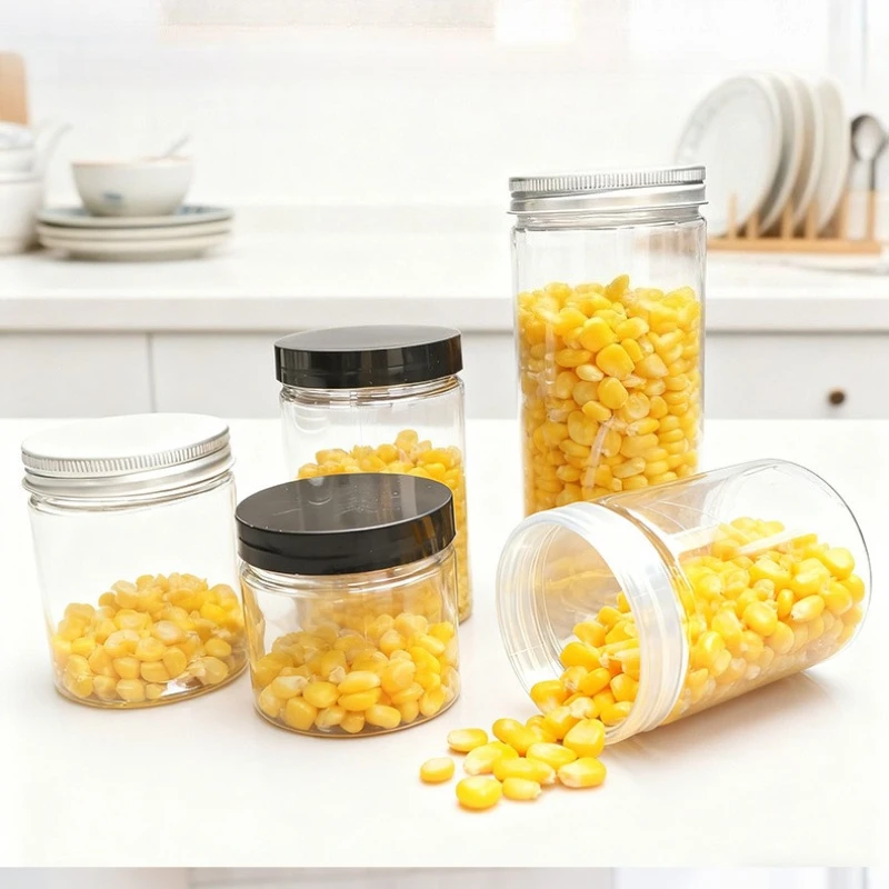 Plastic Spiral Sealed Jar Aluminum Lid Thickened Wide Mouth Transparent Can Coffee Beans Preserved Plum Seaweed Packaging Bottle