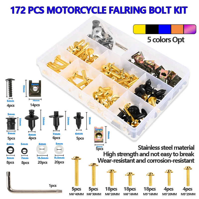 177Pcs Motorcycle CNC Alloy Fairing Bolt Screw Nut Kit For GSXR 600 750 1000 K1-K8 Z750 Z900 Z1000 Z800 400 300