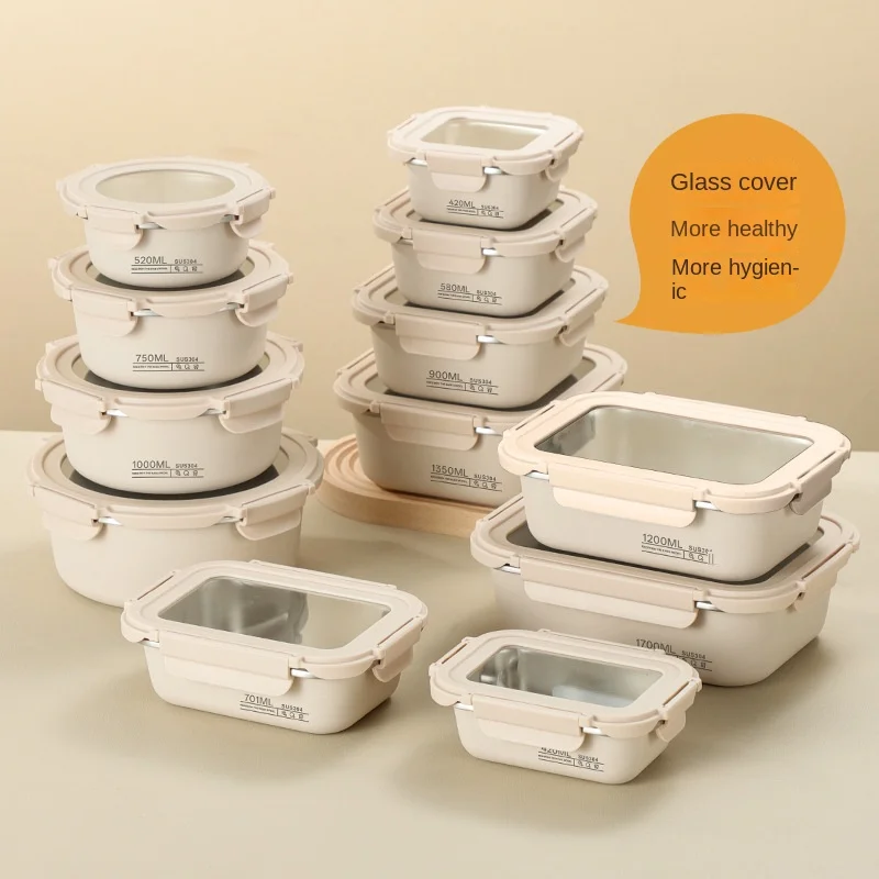 Glass Tupperware Set Airtight Containers Heat Resistant Lunch Box Food Storage Frozen Rice Container Salad Bowl
