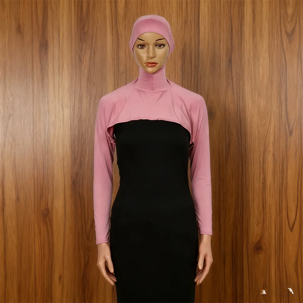 Elastic Jersey Full Neck Sleeve Hooded Scarf Woman Muslim Long Arm Cover Shrug Shoulder Oversleeve Suncreen Wear Under T- Shirt