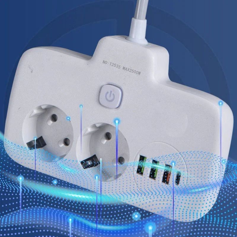 EU Plug Power Strip 2 Socket with 3 USB 1 Type-C Port Electrical Socket European Union Outlet Home Office Adapter 10cm Extension
