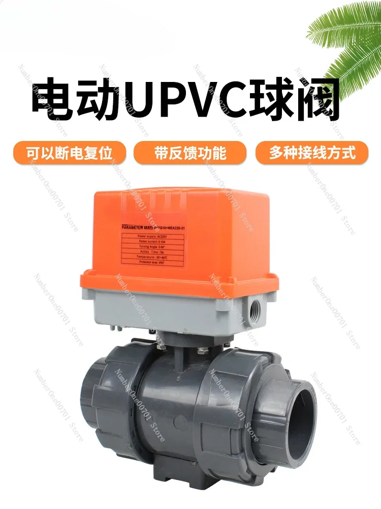 Electric UPVC Ball Valve Switch PVC Double Union Plastic Loose Joint Corrosion Resistant Water Treatment Valve 24V Power off Res