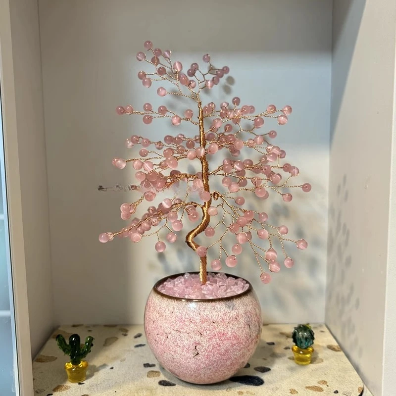 Natural powder crystal opal yellow lucky tree peach blossom ornament wishing home living room entrance decoration gift