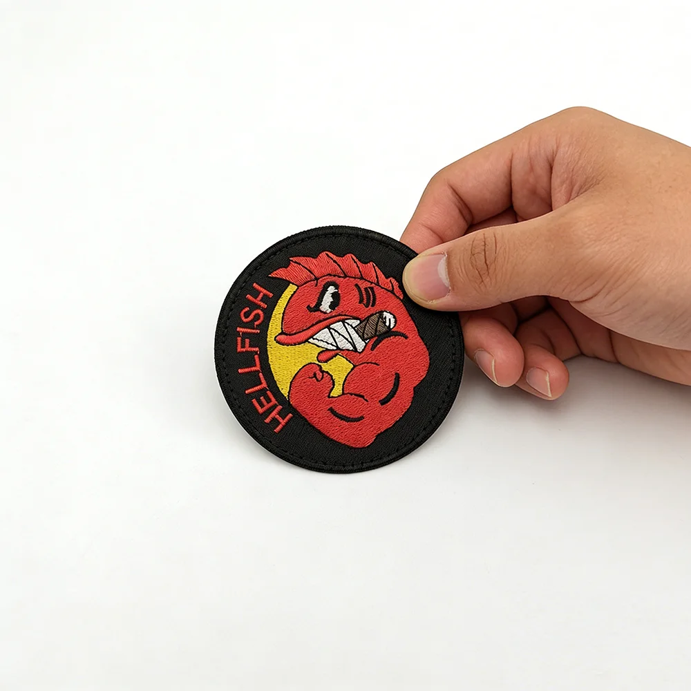 HELL FISH Cartoon Printed Patch Military Tactical Morale Badge Hook and Loop Appliques for Clothes Backpack Cap Decor