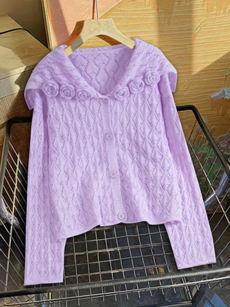 Women's stylish navy collar three-dimensional flower embroidery fashionable anti-aging long sleeved woolen open collar jacket