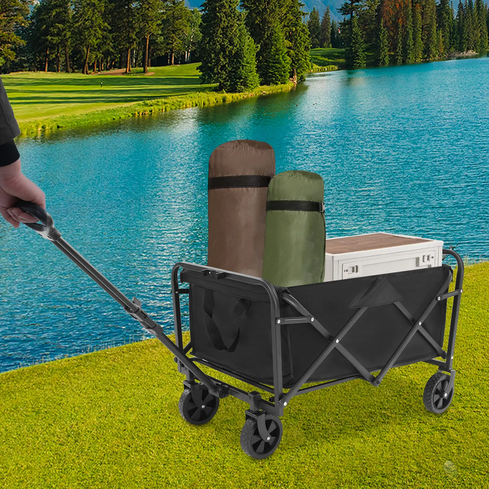 Heavy Duty Large Capacity Folding Wagon Outdoor Portable Utility Cart Collapsible Pull Trolley for Shopping Beach Garden