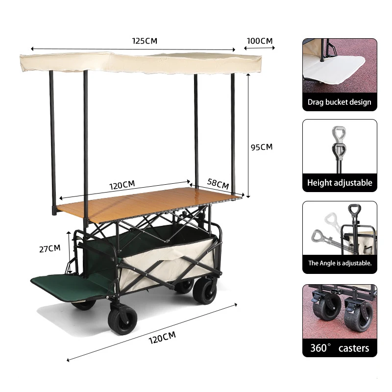 portable food stall hawker cart folding utility vehicle with folding table mobile store with awning camping folding cart