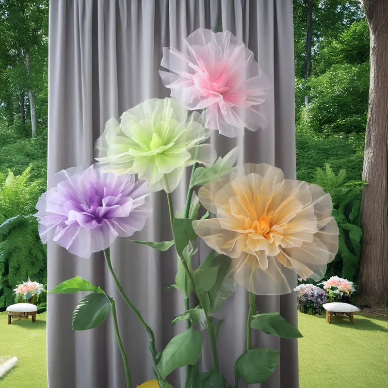 Giant Tulle Artificial Roses Elegant Window Display Luxurious Wedding Decoration Vibrant Outdoor Venue Setup High End VM Decor