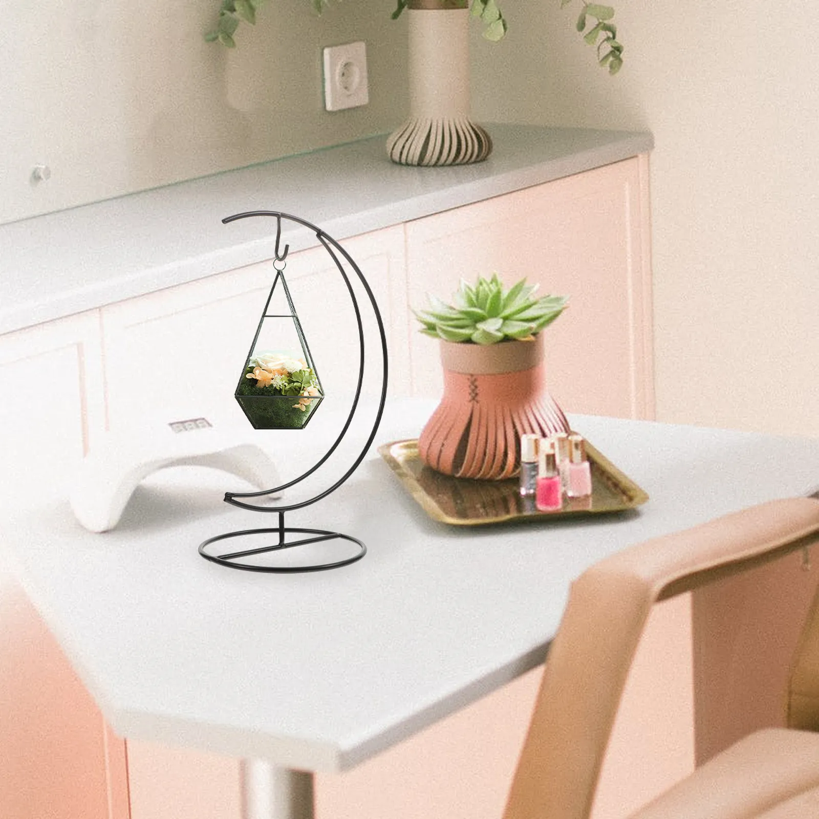 2PCS Display Stand Rack Moon shaped Iron Hanging Rack Holder for Glass Globe Candlestick Flower Pot Ornament Home Table Decor