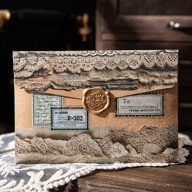 Journal GO 4x200cm Retro Lace Tape Stickers Burned Style Vintage Lace Masking Tape for Card Journaling Scrapbooking