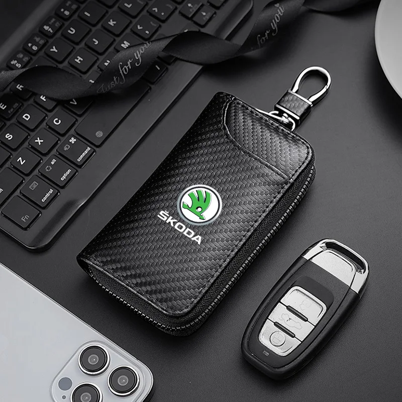Multifunction Carbon Fiber Car Keychain Key Bag Anti-loss Wallet With Buckle For Skoda Fabia Kamiq Superb MK VisionS Yeti Scala