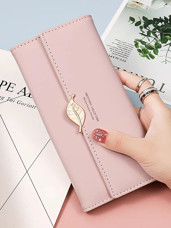 MK Jie Genuine Leather Wallet Women's Long Handheld Bag Card Holder Faionable Korean Sle Zipper Closure Pure Color
