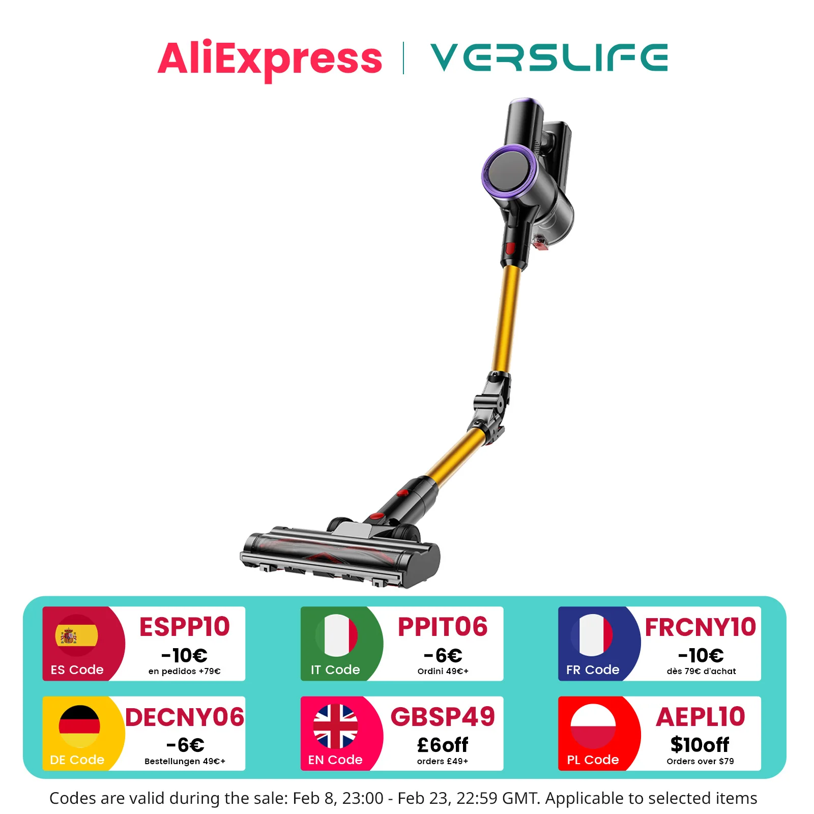 VersLife-S9 Cordless Vacuum Cleaner, 45KPa/500W/45Min, Flexible Wand Design, Wall-mounted Charging, for Hardwood Floor Carpet