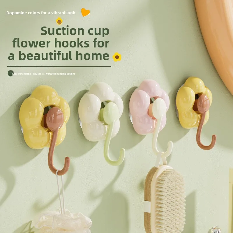 New Powerful Vacuum Flower Suction Hooks No Drilling Strong Load Bearing No Trace Wall Mounted for Kitchen Batoom Toilet