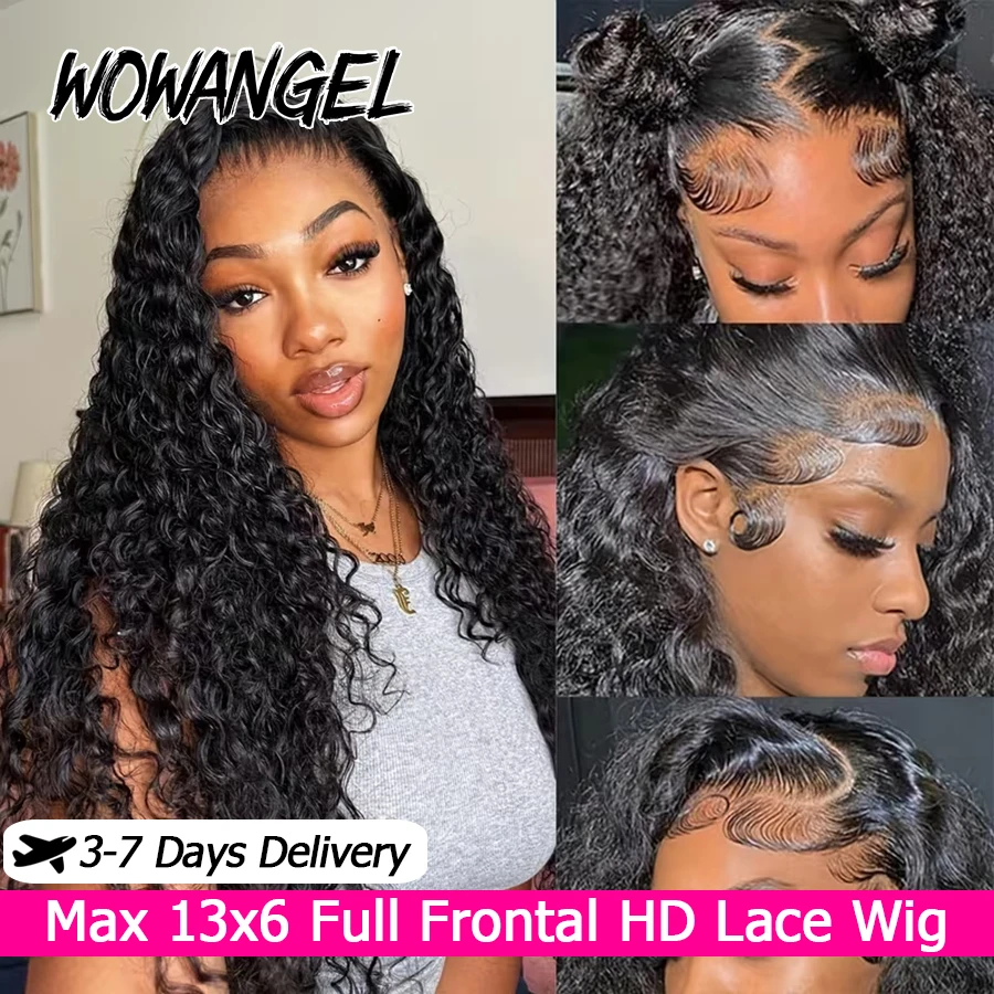 WOWANGEL 250 Density Curly Wigs 13x6 HD Lace Frontal Wig 100% Human Hair Pre Plucked Water Wave Wigs For Women Brazilian Hair