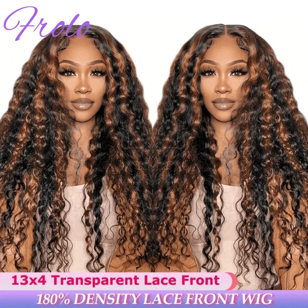 250% Density 13x6 Curly Wig Deep Wave Wigs 1b/30 Highlighted Wig Human Hair 13x4 Lace Frontal Water Wave Human Hair Wig