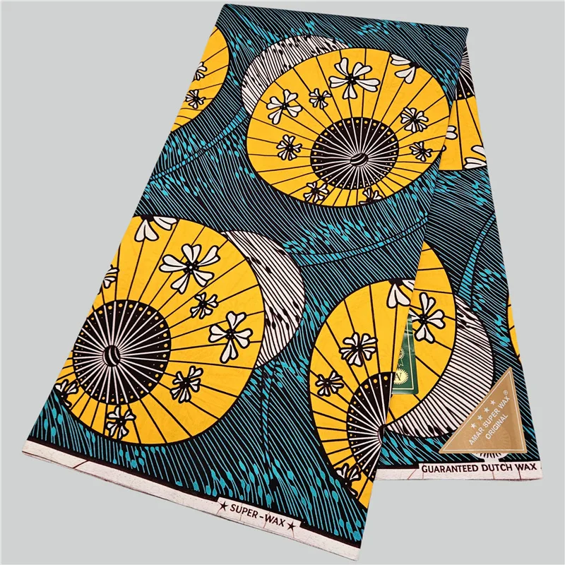 Yellow Balls Printed Blue Cotton African Wax Batik Fabric for DIY Sewing Clothes Jacket Cushions 46'' Wide 6Yards Long R6084