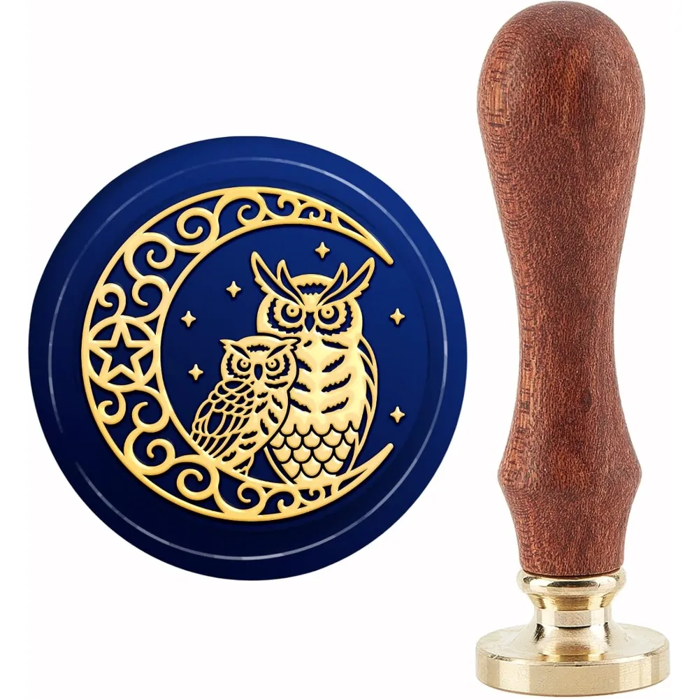 Owl Wax Seal Stamp Moon Stars Vintage Sealing Wax Stamps Retro 30mm Removable Brass Stamp Head with Wood Handle for Wedding