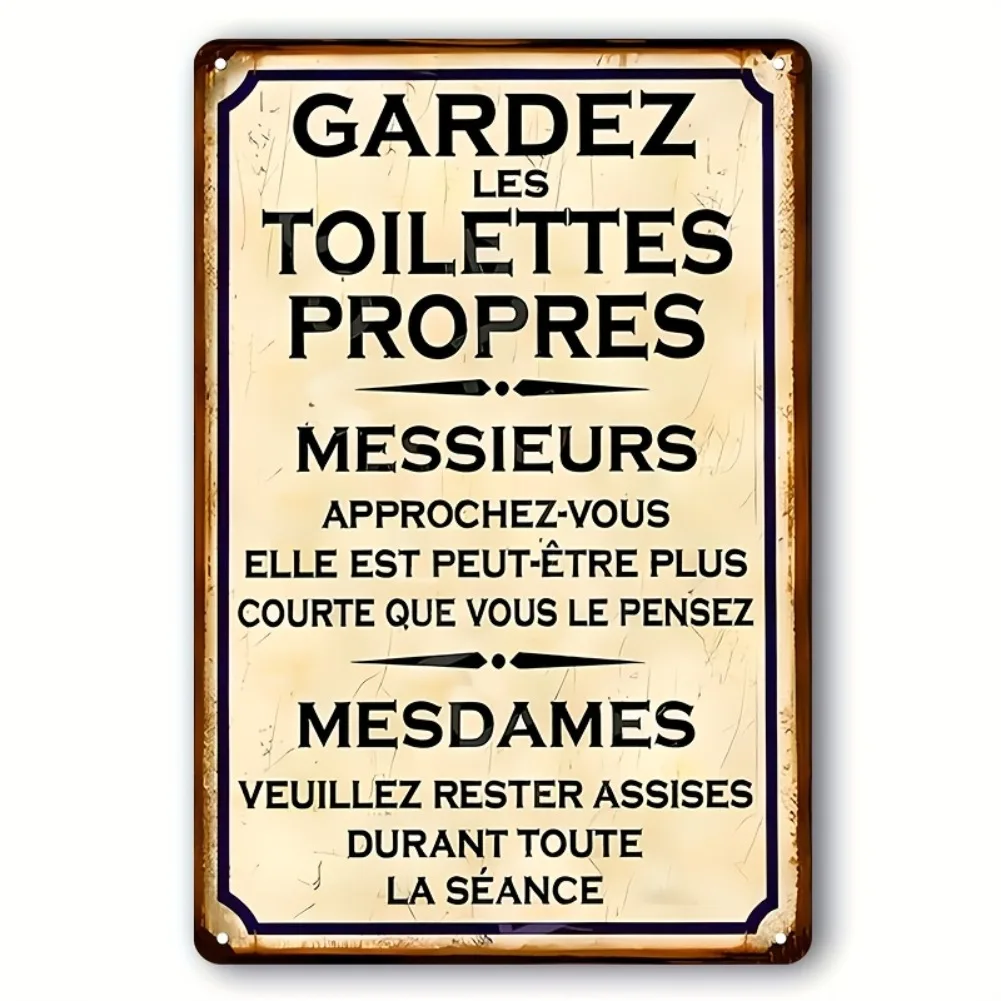 Vintage French Bathroom Sign - 8x12 Inch Iron Wall Art with Humorous Toilet Rules, Rustic Distressed Design, Waterproof Poster