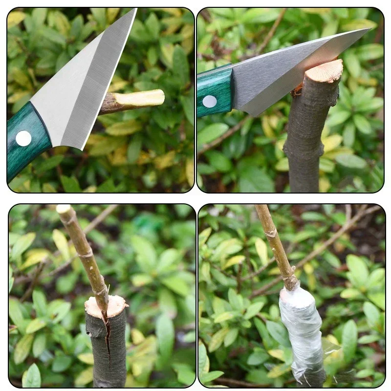 Stainless Steel Grafting Knife With Sheath Gardening Professional Wooden Handle Grafting Tools Multifunctional Bonsai Knife