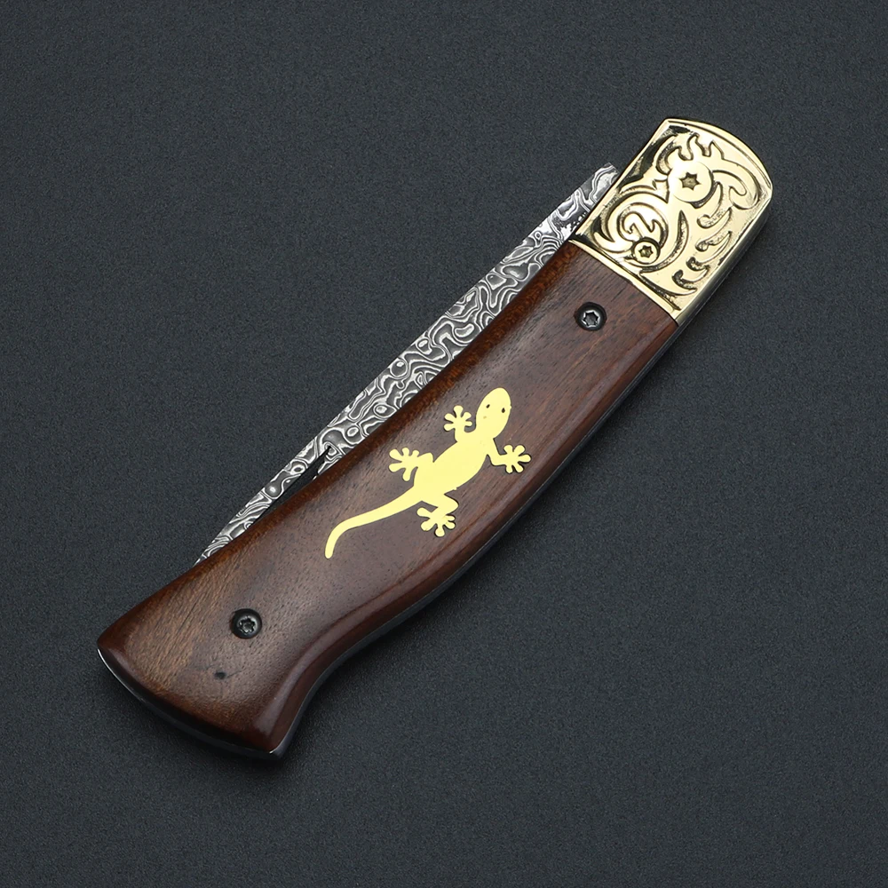 XUANTENG brass gecko pattern handle Damascus VG10 portable fruit knife outdoor cutting tool camping folding knife