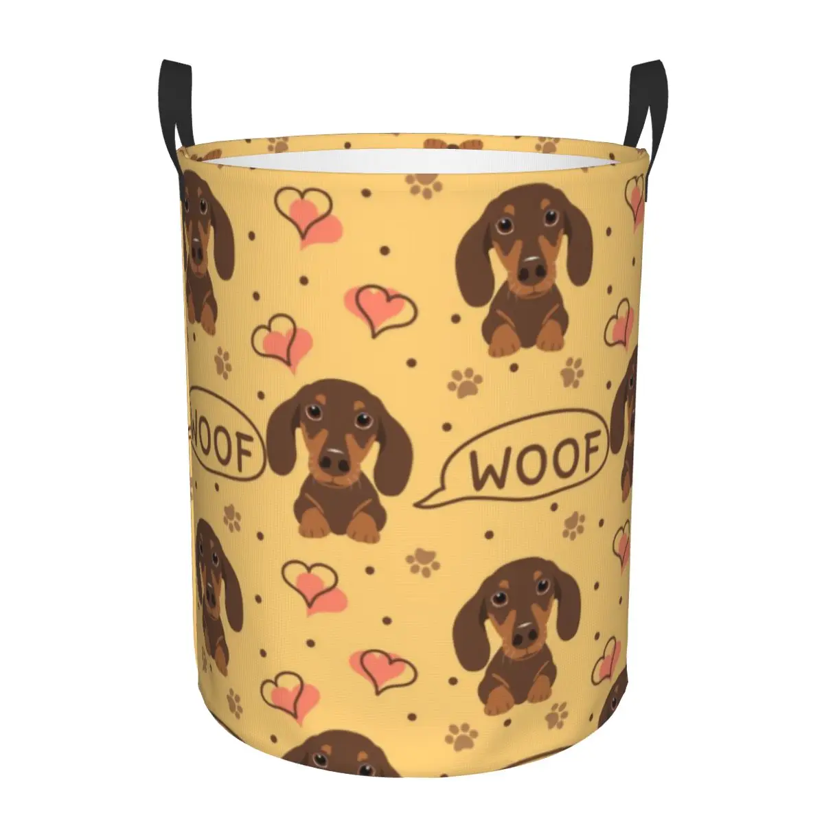 Custom Love Woof Dachshund Sausage Dog Laundry Hamper Large Clothes Storage Basket Wiener Badger Dogs Toys Bin Organizer for Kid