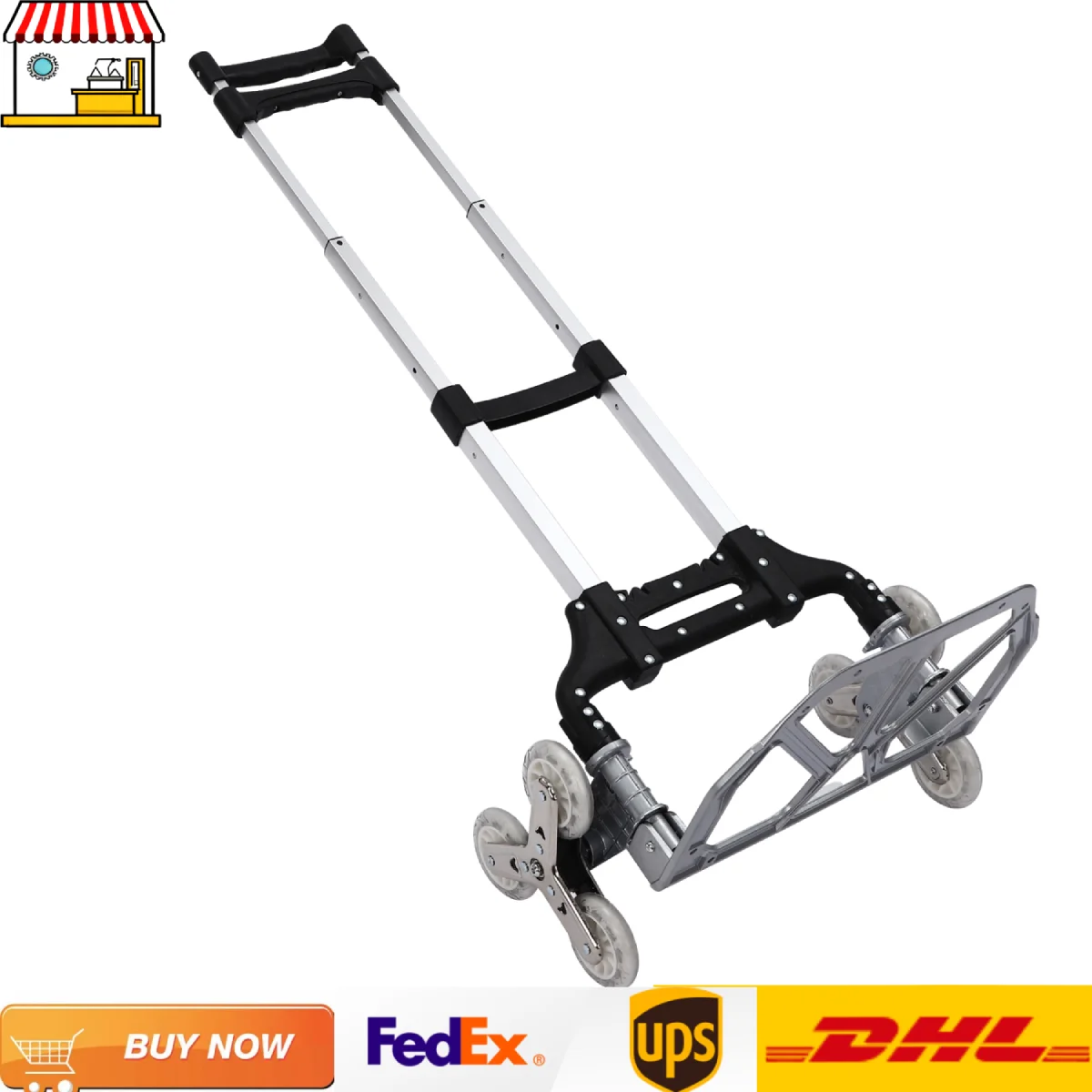 Portable Aluminum Alloy Stair-climbing Cart| 165lbs Folding Hand Truck with Elastic Binding Rope