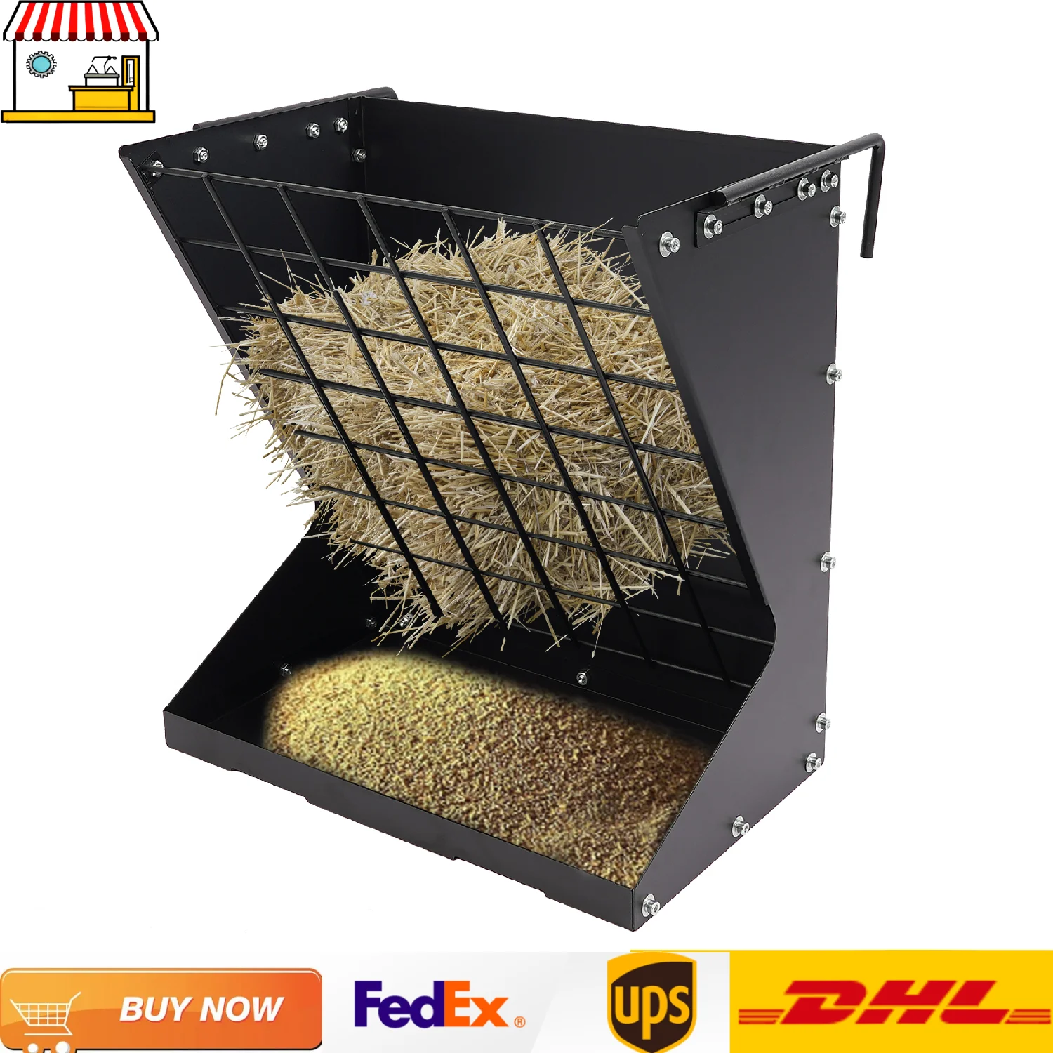 Goat Hay Feeder with Hanging Hooks| Heavy-Duty Steel Livestock Hay Rack| Farm Sheep Feeding Rack