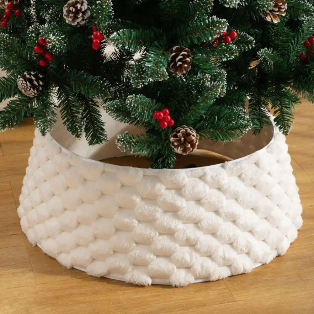 3D Holiday Season Tree Base Cover Christmas Tree Skirt Easy Installation Bohemian Plush Xmas Tree Skirt Festival Home Decor