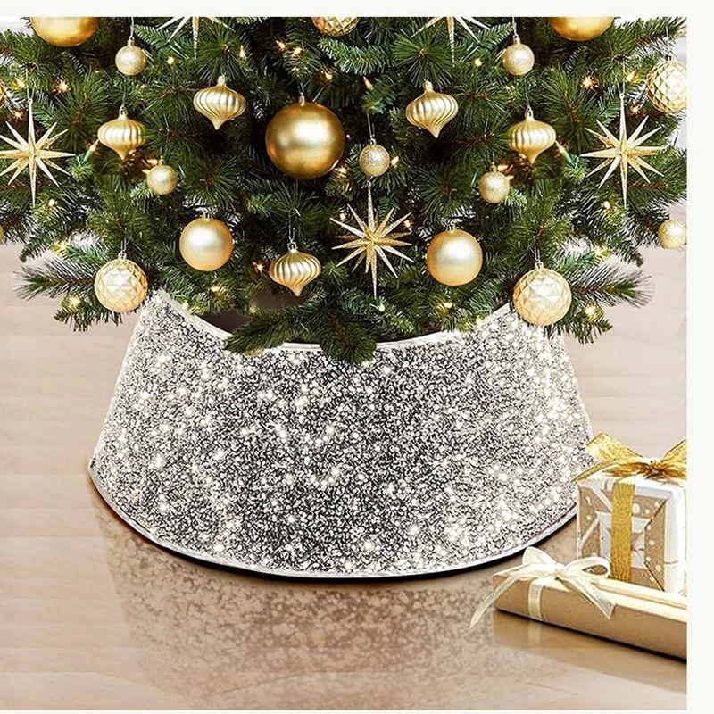 1pc Christmas Tree Decor Base Silver/Red Glitter Home Decor Theme Party Xmas Tree Stand Base Cover Happy New Year Deco
