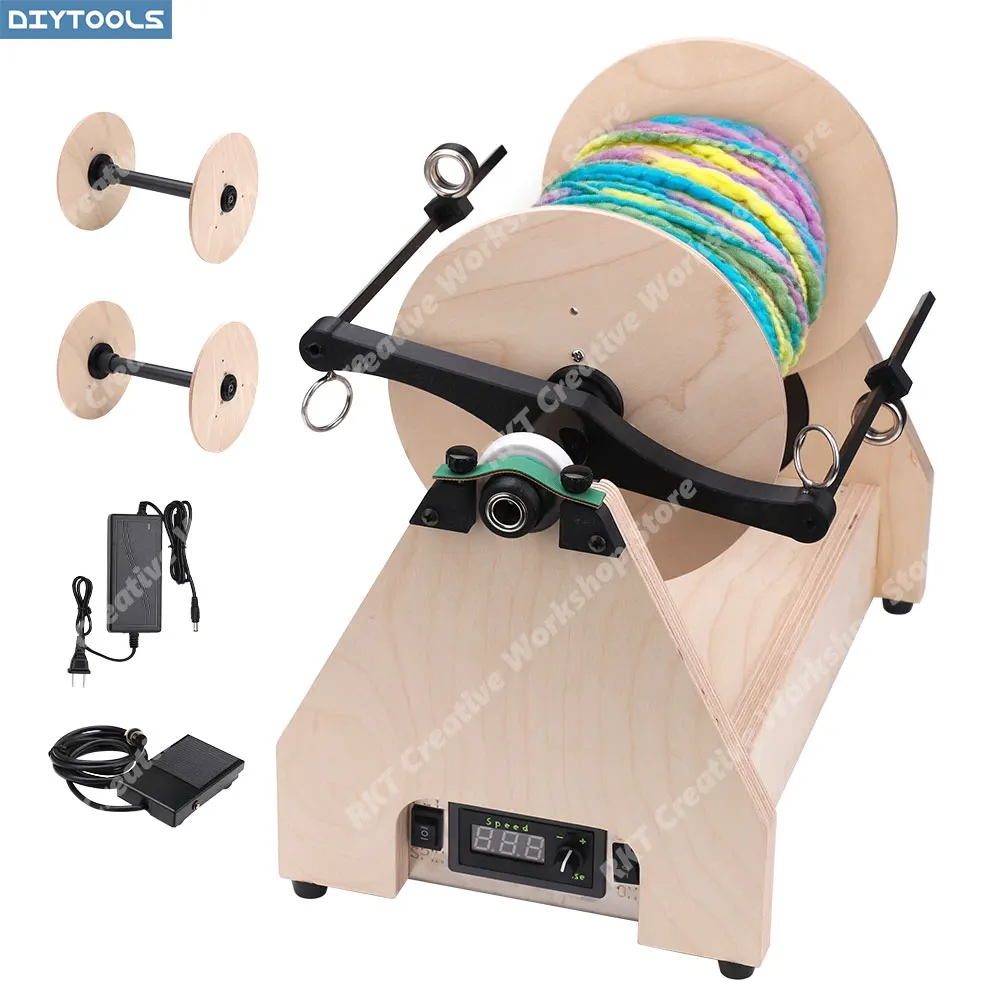 Electric Spinning Wheel Extra-Large Machine Artistic Digital Display Studio-Grade Wooden Wool Ball Winder Winding Yarn Skein DIY
