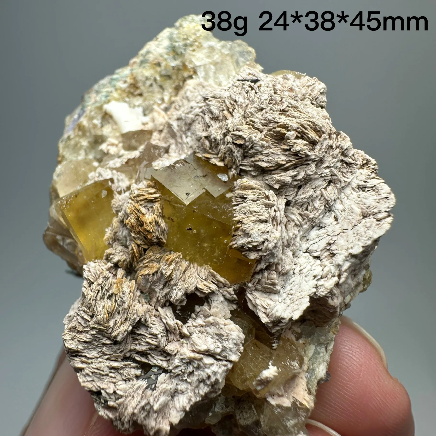 Natural Beijing yellow cube fluorite and barite Symbiosis mineral specimens + healing quartz crystals and stones rock gemstone