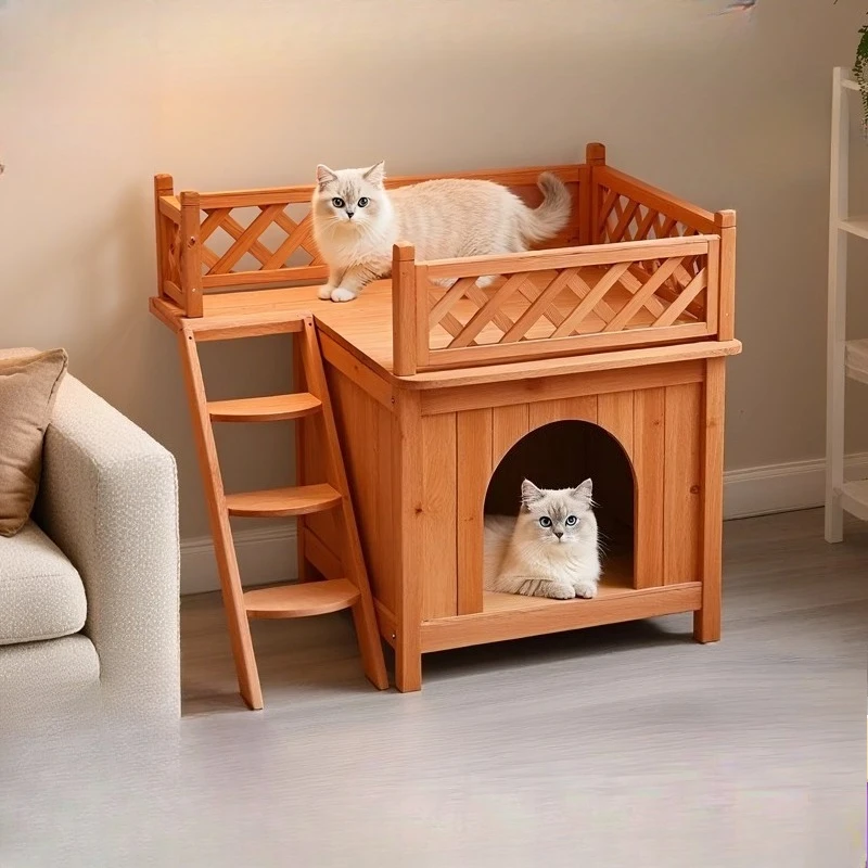 Solid wood cat nest Four Seasons Universal Villa Indoor and Outdoor Double-layer Household Cat Room Cage