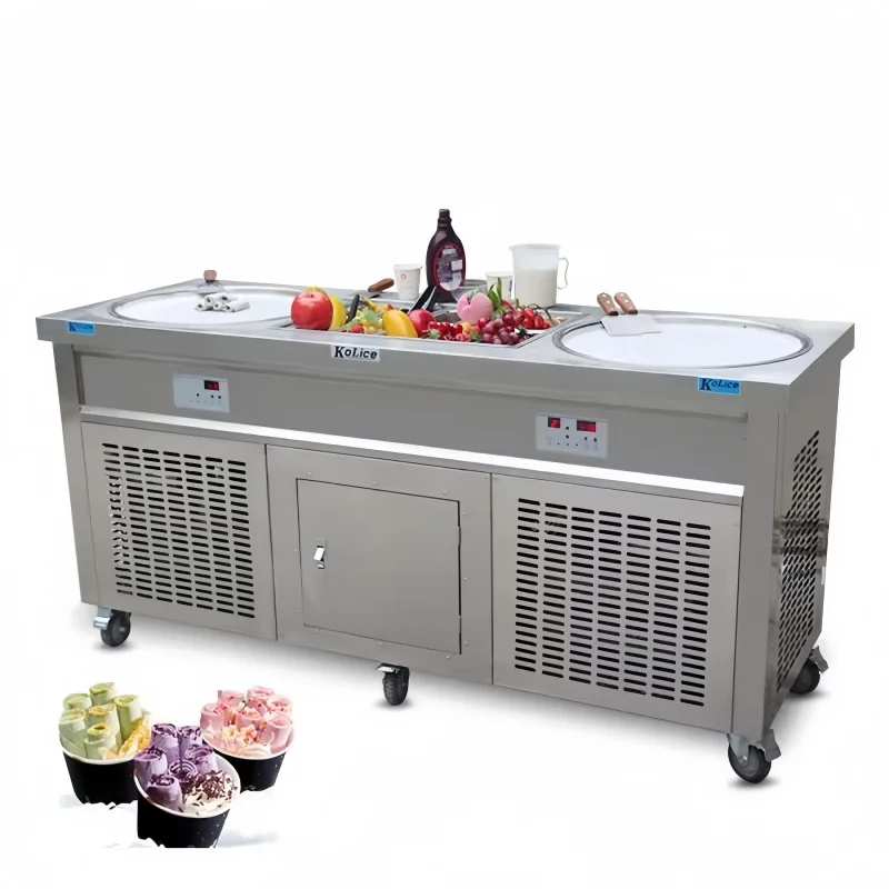 Commercial Thailand Fried Ice Cream Roll Machine Cheap Ice Cream Roll Maker 2-pan Yogurt Fry Ice Cream Machine