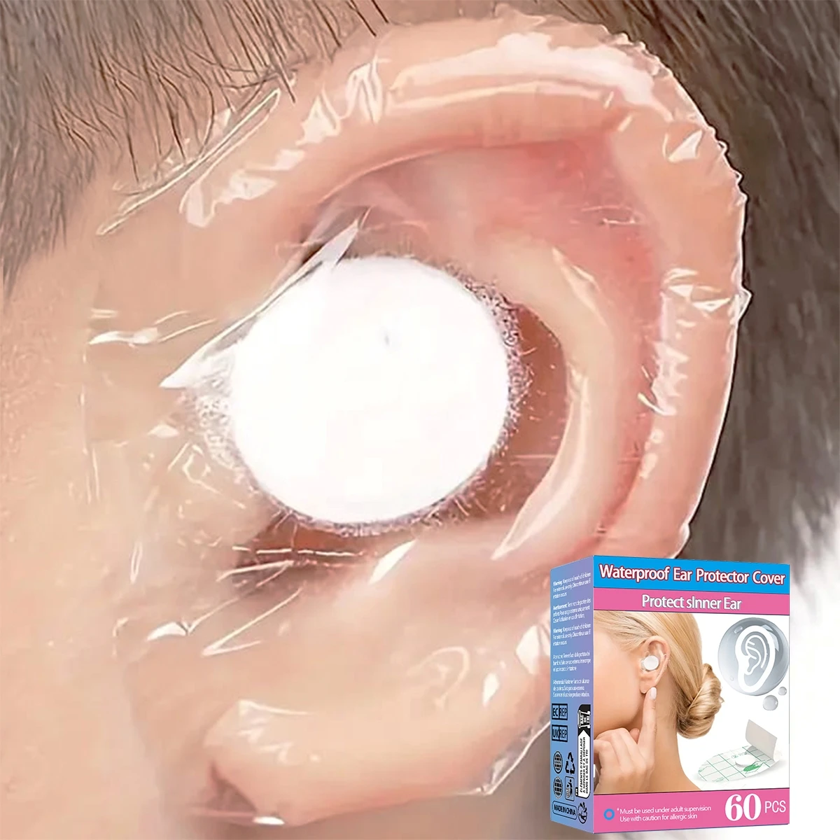 Bath protection for ears -60 waterproof earmuffs - soft and comfortable, disposable PE material, suitable for swimming, showerin