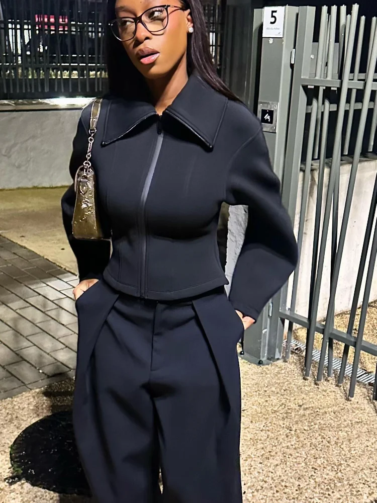 Cinched Waist Women's Jacket Coat Zipper Turn-Down Collar Solid New Outerwear Female Casual High Street Fashion Jacket Ladies