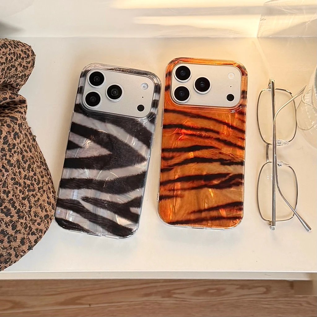 Fun Advanced Zebra Orange Tiger Texture Pattern Shockproof Protective Phone Cover Case for iPhone 17 16 15 14 Pro Max