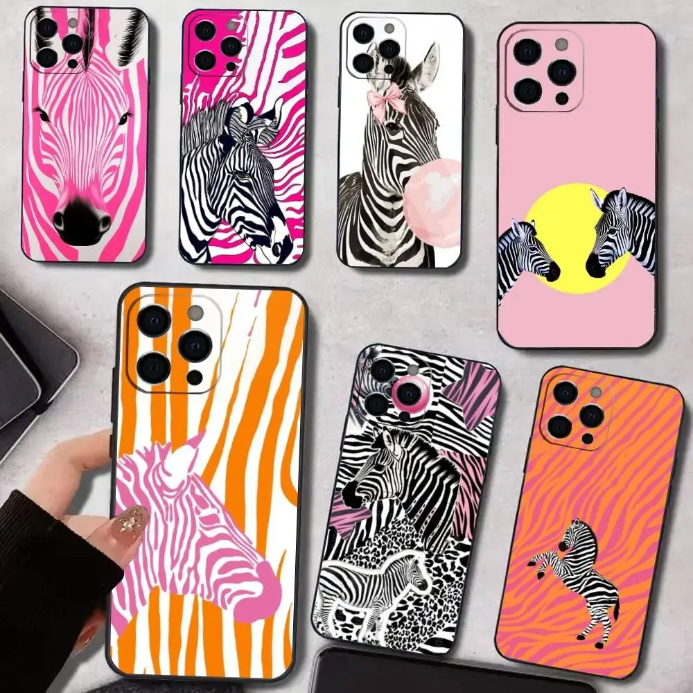 Zebra Print Clip Art Phone Case Cover For iPhone 17 Air 15 16 14 11 12 13 Pro MAX Plus Coque