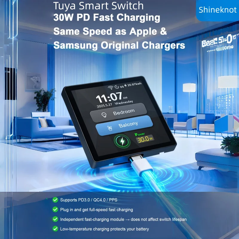 Zigbee 3.0 Smart Home Tuya App Remote Control 4-Inch Intelligence Touchscreen Switch With Type-C 30w Fast Charging Wi-Fi Switch