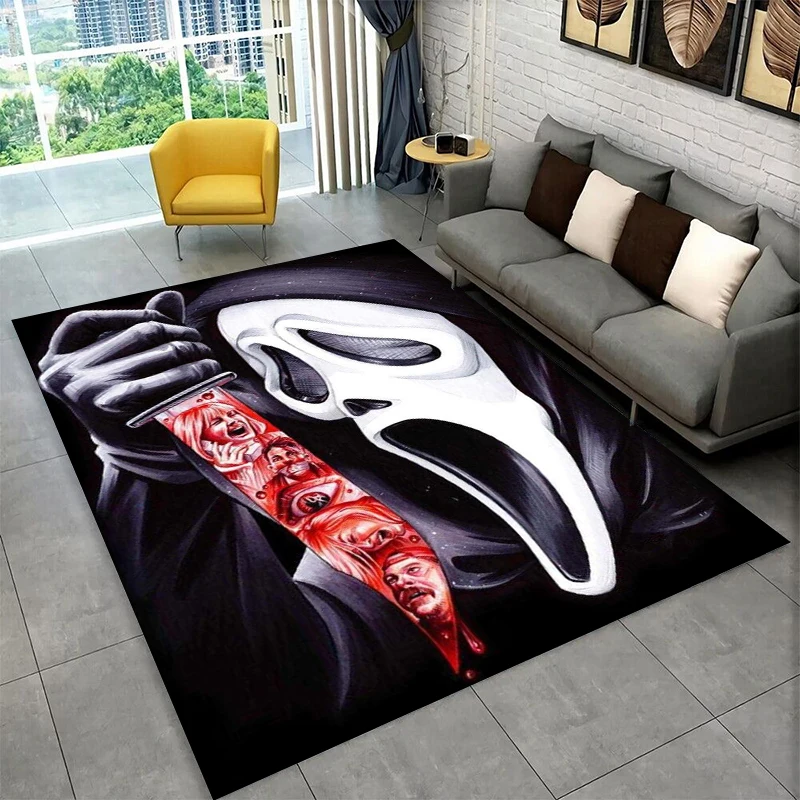 Alfombra de dibujos animados con personaje de película de terror Chucky S-Scream para sala de juegos, dormitorio, sala de estar, sofá, decoración del hogar, alfombra antideslizante