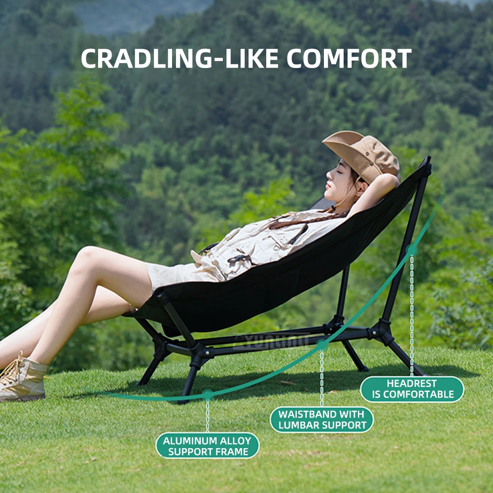 Silla de camping plegable portátil de aleación de aluminio con reposacabezas – Chaise Longue para exteriores/playa/turista para viajes relajantes y ocio